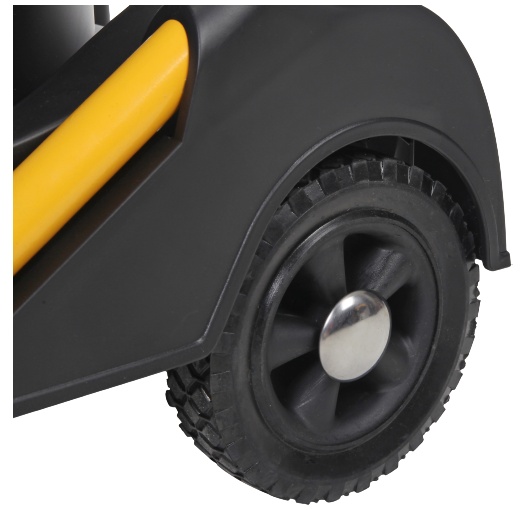 Two large rear wheels with two front casters offer easy mobility.